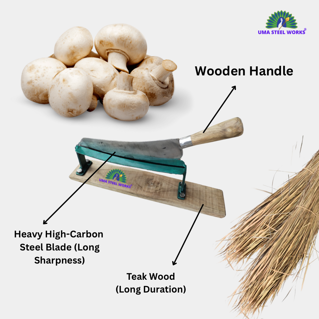 Are you looking for a durable and efficient tool to simplify mushroom farming and straw processing? The Mushroom Straw Grass Cutter by Uma Steel Works is designed to meet the needs of farmers, mushroom growers, and small-scale agricultural units. Built with a high-carbon steel blade and a strong wooden handle, this manual cutter ensures clean, uniform, and safe cutting of straw, hay, and mushroom substrate. Whether you are preparing straw for mushroom beds, cattle feed, or eco-friendly broom making, this cutter is the perfect addition to your farm toolkit.